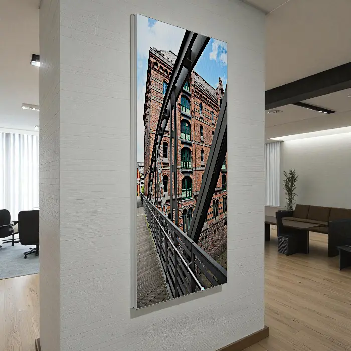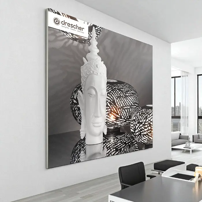 Die einseitigen Textilspannrahmen wirken edel und elegant und sind eine optimale Alternative zu Leinwanddrucken in unterschiedlichen Bautiefen mit einer fast rahmenlosen Optik.