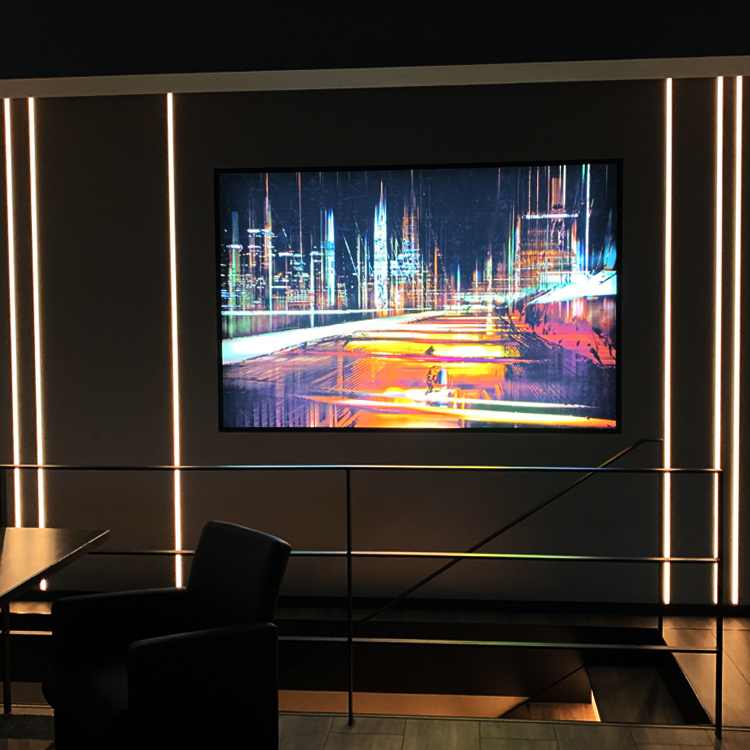Der Textilspannrahmen ist ein echter Allrounder mit glatter Außenseite und vielen Einsatzmöglichkeiten zur Wandmontage mit fester Rückwand aus Alu-Dibond.